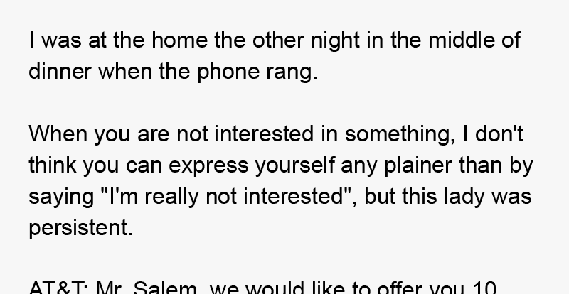 AT&T: YES! This is AT&T. May I speak to Mr. Salem please?