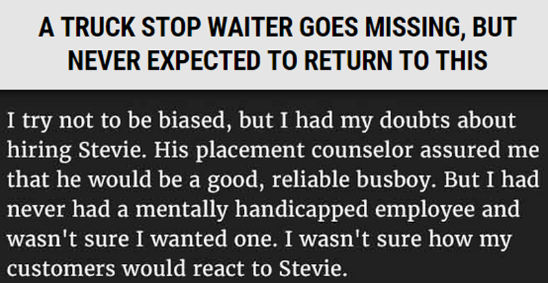 A Truck Stop Waiter Goes Missing, But Never Expected To Return To This By Molly Gibson - July 21, 2015