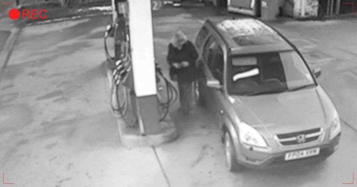 The surveillance camera in a gas station caught a woman who appeared to be having a pretty bad day. She drives around several times but can’t seem to find her gas tank.