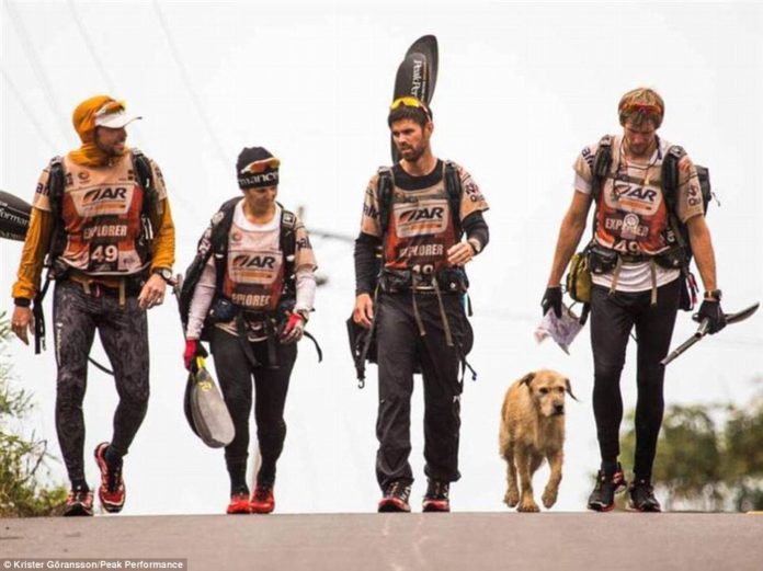 Although the team placed sixth in the competition, the dog, nicknamed ‘Arthur,’ stubbornly followed the foursome the entire time.