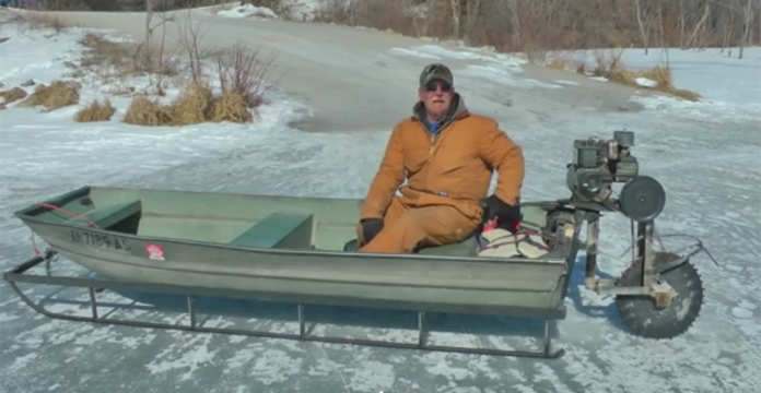 These ice fisherman have found a unique and genius way to navigate ice quickly and simply that doesn’t involve carrying pounds and pounds of kibble. They managed to make an ice boat that travels by sawing into the ice.