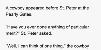 A Tough Cowboy Appeared In Front Of The Pearly Gates. ...