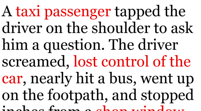 "A taxi passenger tapped the driver on the shoulder to ask him a question.