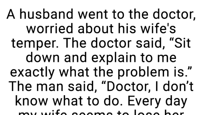A husband went to the doctor, worried about his wife's temper. The doctor said, “Sit down and explain to me exactly what the problem is.”