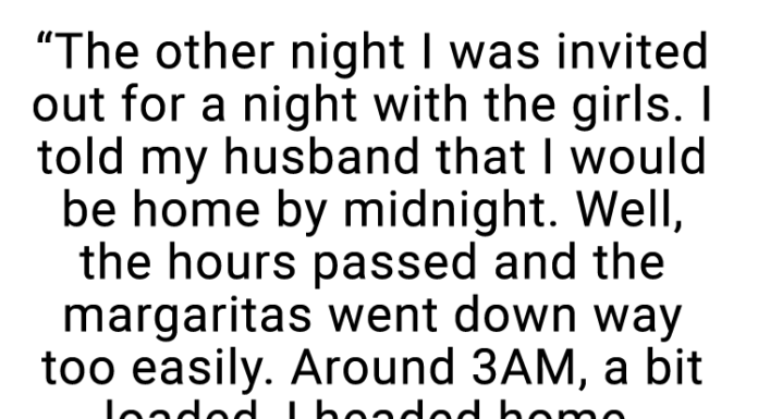 The other night I was invited out for a night with the girls. I told my husband that I would be home by midnight. Well, the hours passed and the margaritas went down way too easily. Around 3AM, a bit loaded, I headed home. Just as I got in the door, the..."