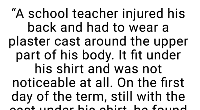 "A school teacher injured his back and had to wear a plaster cast around the upper part of his body. It fit under his shirt and was not noticeable at all. On the first day of the term, still with the cast under his shirt, he found himself assigned to the toughest students in school.