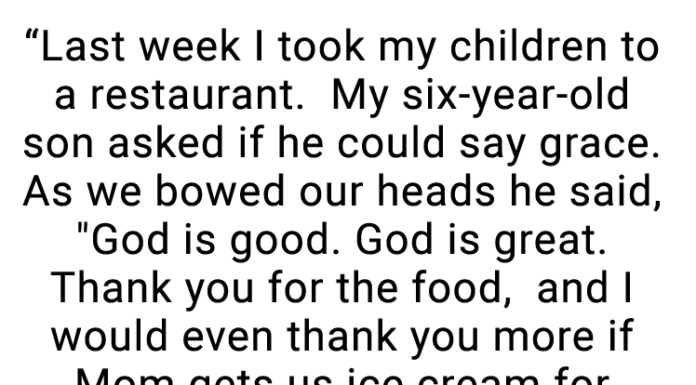 "Last week I took my children to a restaurant. My six-year-old son asked if he could say grace.