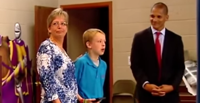 The final award was for service to the country. Josh and his mom was called up in front of the entire school. That’s when you can see the look of utter shock on Josh’s face as his father enters the room.