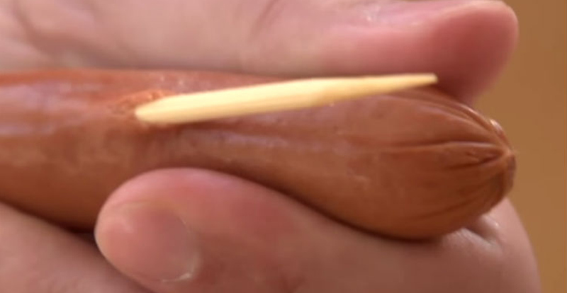In typical American fashion, we are used to eating hot dogs on a bun, with ketchup or mustard. But this innovator decided to defy conventional norms and took inspiration from the Corn Dog, which is usually found at carnivals, and stuck a wooden stick through his hot dog.