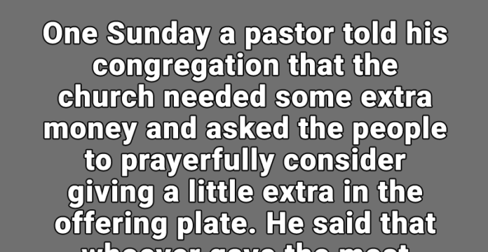 One Sunday a pastor told his congregation that the church needed some extra money and asked the people to prayerfully consider giving a little extra in the offering plate.