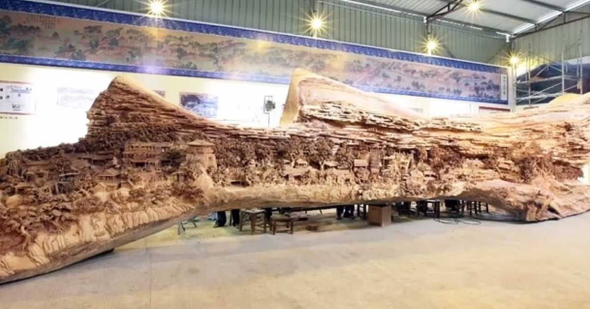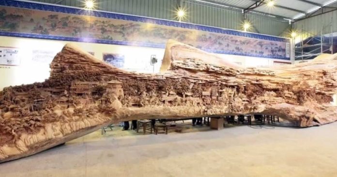 Chinese Artist Zheng Chunhui has created a fully three dimensional carving of the painting “along the river during the Qingming festival”. The carving is ten feet tall and over forty feet long, which has earned it a place in the Guinness book of world records.