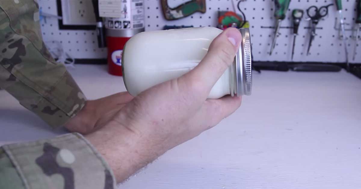 First, you need to pour heavy whipping cream about halfway through a jar.