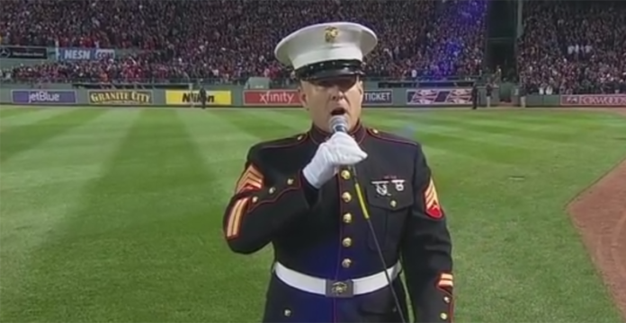 Marine Corps Sergeant Dan Clark made a stunning display of patriotism in Boston’s Fenway Park. With 30,000 people in attendance, the pressure must have been crushing. But Sgt. Clark’s performance was truly impressive.