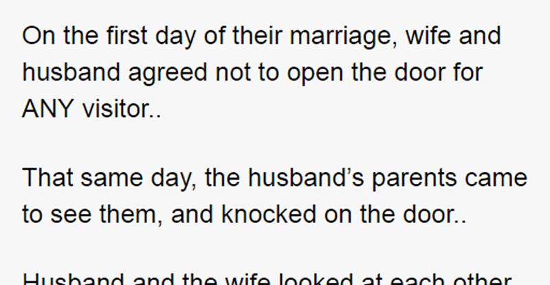 On the first day of their marriage, wife and husband agreed not to open the door for ANY visitor..