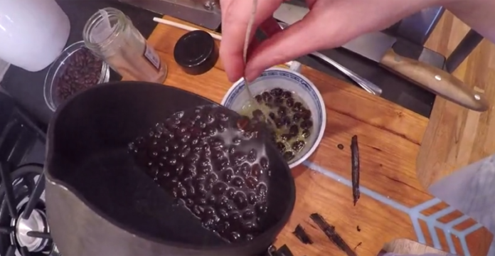 For utensils, you need a teacup, a pot (with a spout if you have it), chopsticks, candles, and wicks. For ingredients, you need coffee beans, vanilla beans, and glue.