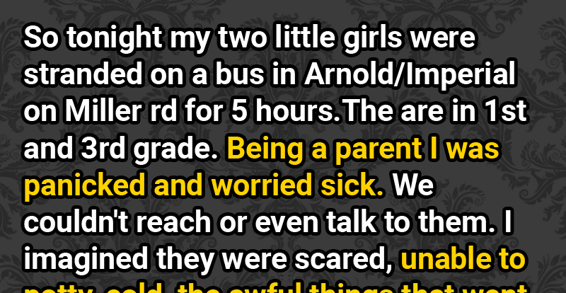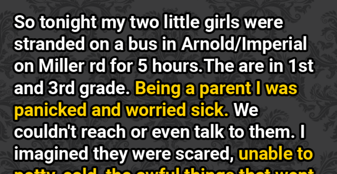 So tonight my two little girls were stranded on a bus in Arnold/Imperial on Miller rd for 5 hours. Bus 23. They are in 1st and 3rd grade.