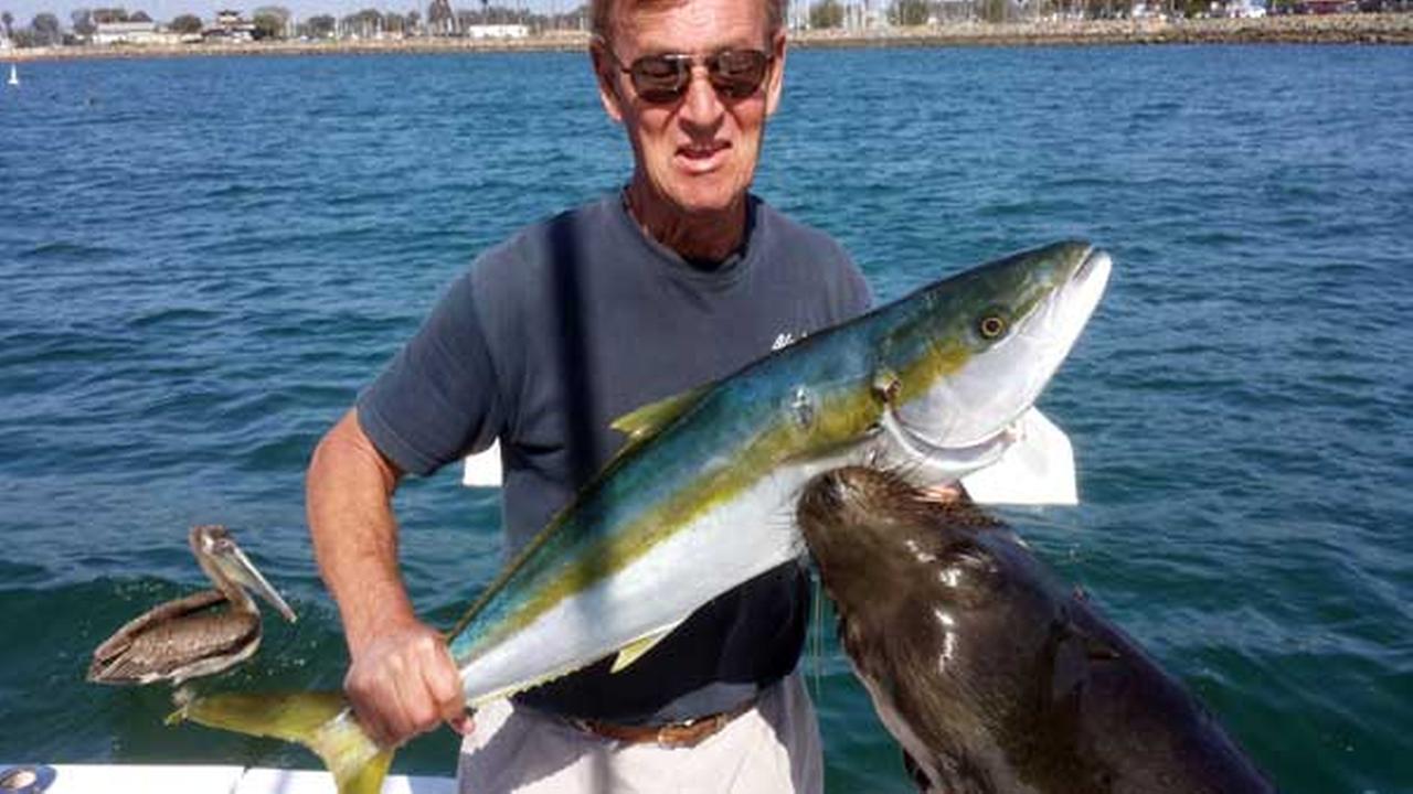 Daniel Carlin of Carmin Valley San Diego went fishing with his wife one afternoon. He caught an impressive fish and his wife decided to snap a quick picture of Daniel posing with the fish. When he stopped to take the photo a sea lion jumped out of the water and latched onto the fish.
