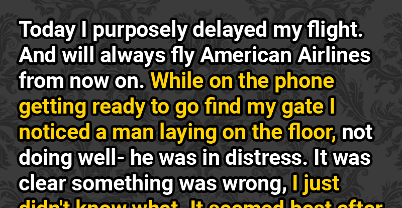 Today I purposely delayed my flight. And will always fly American Airlines from now on. Here is why: while on the phone getting ready to go find my gate I noticed a man (his name is Will K.) laying on the floor, not doing well- he was in distress. It was clear something was wrong, I just didn’t know what.