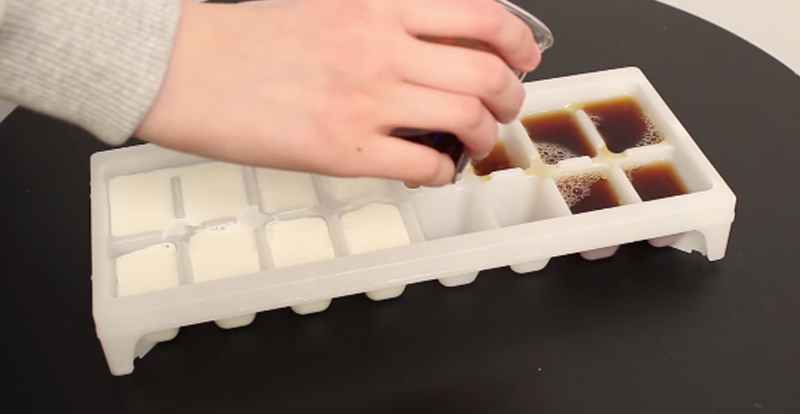 The trick is simple. Instead of freezing water to cool down your coffee, try freezing milk or more coffee. The cubes still cool down the drink, and when they melt they only enhance the flavor instead of weakening it.