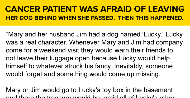 The night before she was to go to the hospital she cuddled with Lucky. A thought struck her…what would happen to Lucky? Although the three-year-old dog liked Jim, he was Mary’s dog through and through. If I die, Lucky will be abandoned, Mary thought. He won’t understand that I didn’t want to leave him. The thought made her sadder than thinking of her own death.