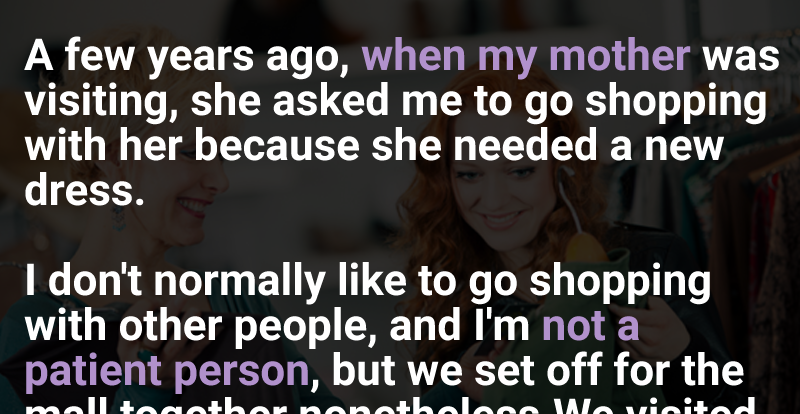 A few years ago, when my mother was visiting, she asked me to go shopping with her because she needed a new dress. I don’t normally like to go shopping with other people, and I’m not a patient person, but we set off for the mall together nonetheless.