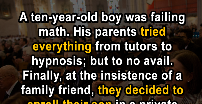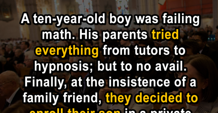 A ten-year-old boy was failing math. His parents tried everything from tutors to hypnosis; but to no avail. Finally, at the insistence of a family friend, they decided to enroll their son in a private Catholic school.