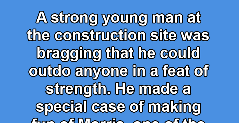 A strong young man at the construction site was bragging that he could outdo anyone in a feat of strength.