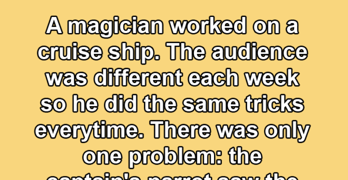 The audience was different each week so the magician did the same tricks over and over again. There was only one problem: the captain’s parrot saw the shows each week and began to understand how the magician did every trick. Once he understood, he started shouting in the middle of the show.