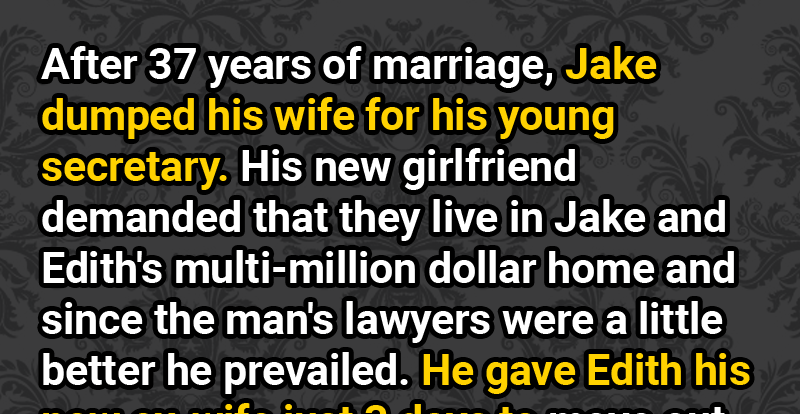 After 37 years of marriage. Jake dumped his wife for his young secretary.