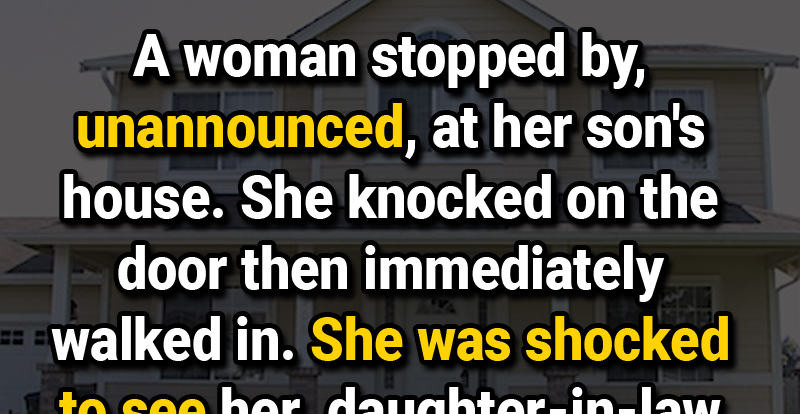 She knocked on the door then immediately walked in. She was shocked to see her daughter-in-law lying on the couch, totally naked.