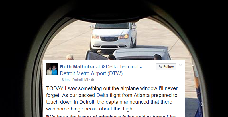 THANK YOU, PFC Wells, for making the ultimate sacrifice. Thank you, Delta, for honoring our military and especially our fallen heroes in this way. And thank you, fellow passengers of Flight 629, for the respect and unity you displayed today. I was deeply moved. #FreedomIsNotFree #CurtisJWells #DeltaAirLines #USA