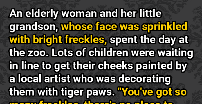 Embarrassed, the little boy dropped his head. His grandmother knelt down next to him. “I love your freckles. When I was a little girl I always wanted freckles,” she said, while tracing her finger across the child’s cheek. “Freckles are beautiful.”