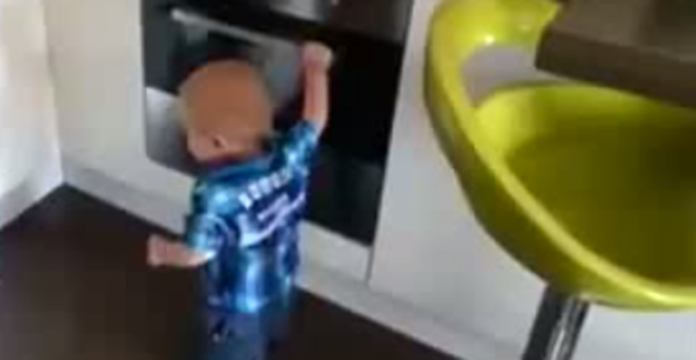 One of the most dangerous places for toddlers is the kitchen, as there’s plenty of sharp and hot things that can do serious harm. Luckily for the baby in the video, the cat’s got his back!