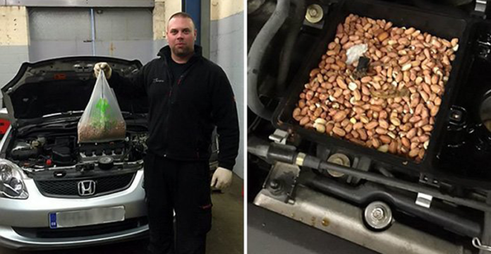 The mechanic and garage owner David Evans, said that he had never seen anything like it, “It was rammed solid with nuts.”